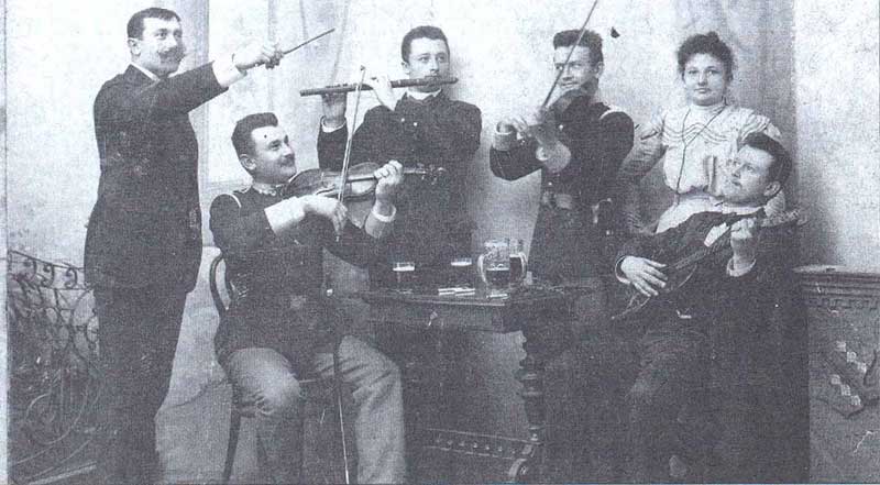 To jsem vám ještě neřekl, že v restauraci pana Zajíce, stálém stánku „SOKOLA“, takhle rozverně dováděla, kromě hostů, celá kolinecká kapela, vytvořená nejméně z jedné třetiny z rodin Zajíců a Márů: housle: Karel Kopáček, Arnošt Varcoller, Jan Trojan, Anna Zajícová (roz. Márová), Rudolf Rašek, Josef Lerach a Karel Zajíc, violloncello: Jaroslav Zajíc, kontrabas: Zídek, klarinety: Vojtěch Mára a Josef Jindra, flétny: Alois Zajíc a Jan Kopáček, křídlovky: Václav Kněz a Antonín Honzík, klavír: Libuše Márová (roz. Přádová), dirigent František Mára. Dále hrávali např. i Antonín Smola, Karel Kondr a další, viz dokumentární fotografie. Když přišla doba „dechové muziky“ využili muzikanti nejen not, ale i muzikantských znalostí a dokázali se rychle přeorientovat!